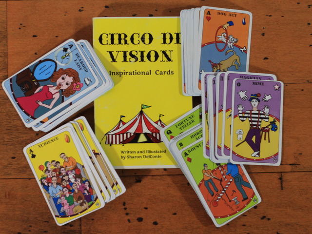 Sharon DelConte, a psychotherapist and hypnotherapist with over 30 years of experience, conceived the Circus Insight Cards after a flash of inspiration while listening to a lecture on Carl Jung. She connected Jung's ideas of symbolism and archetypes with the concept of "running away to the circus" to find protective characters, leading her to design a deck for emotional healing. She developed 78 circus characters in six months, then partnered with Brian Carver, whose graphic computer skills and design sense brought the project to fruition. DelConte's background in holistic spirituality and energy work deeply informs the deck's purpose as a tool for personal discovery.